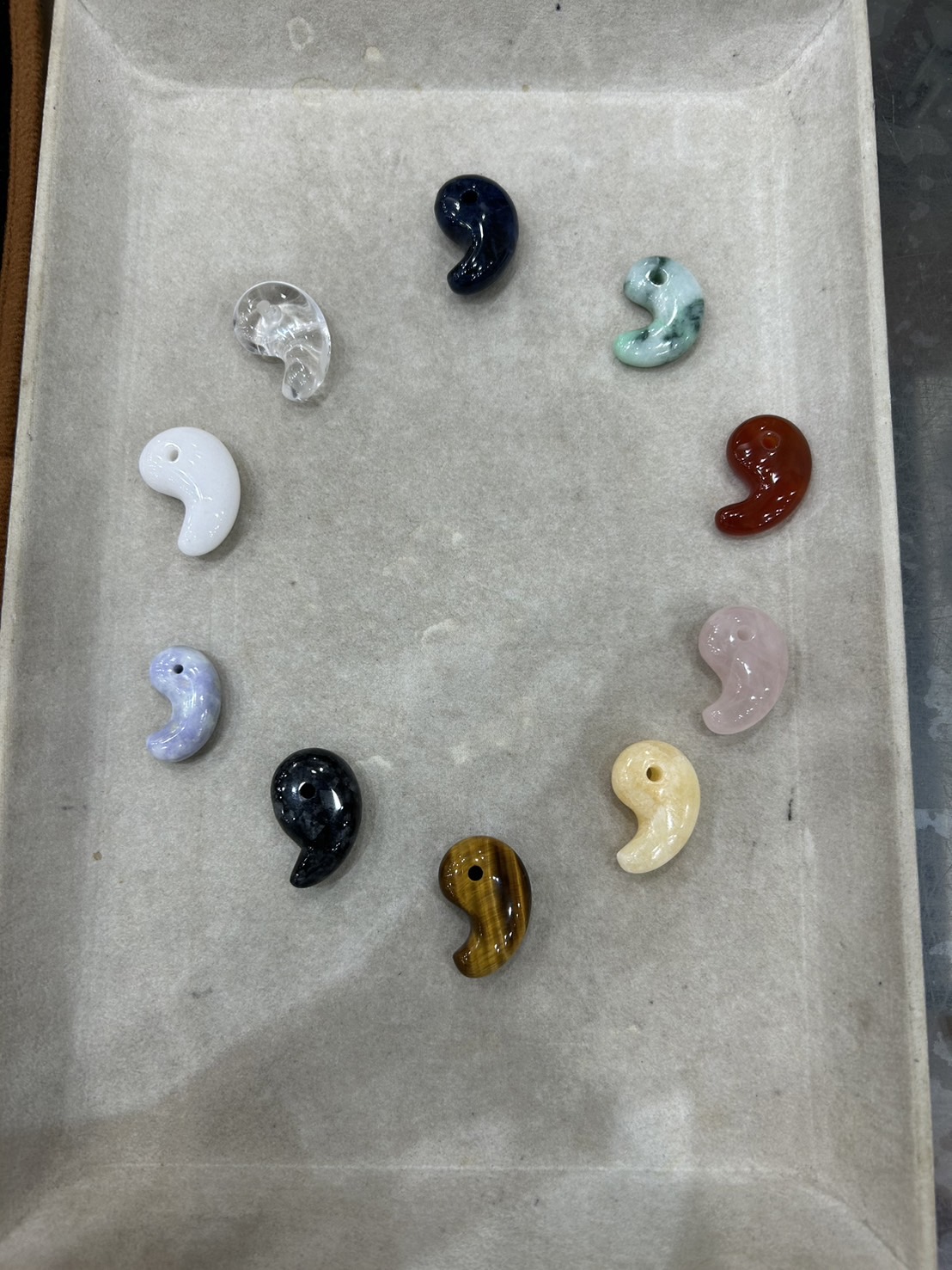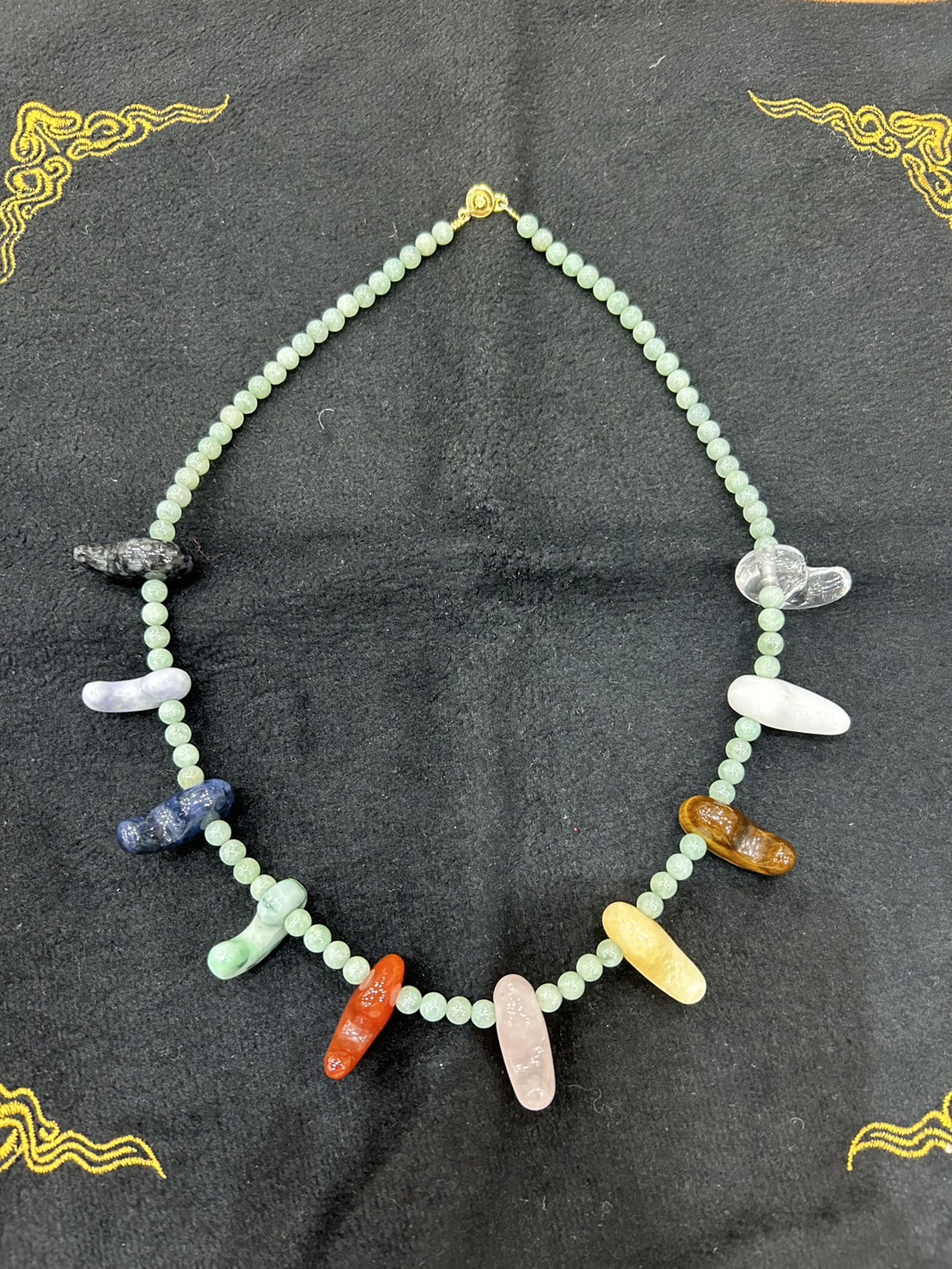 ペンダントへ加工してもらうため、いくつかの彫金屋を回ったが、難しい要望のようだ。せめて勾玉をたくさん買って帰ろう、そう思い天然石専門店のクリスタル・ワールドを訪れると今日入荷したばかりの黒翡翠の勾玉があるという。さらに翡翠のビーズもあり首飾りの仕立ても行ってくれるというのだ。