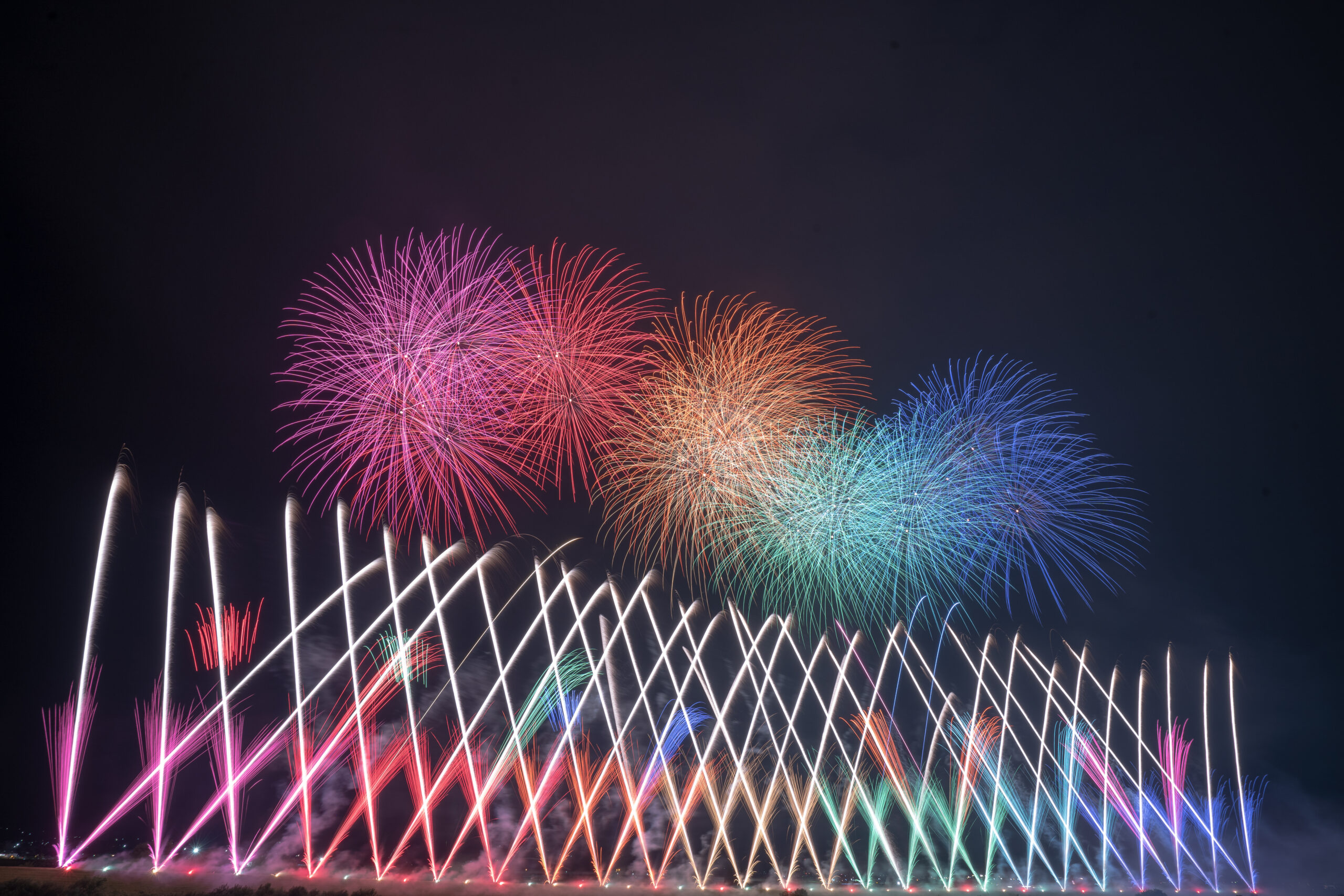 とにかく打ち上げ場所が広いので、広角で撮影してもフレームアウトしてしまうほどの花火に終始圧巻でした。